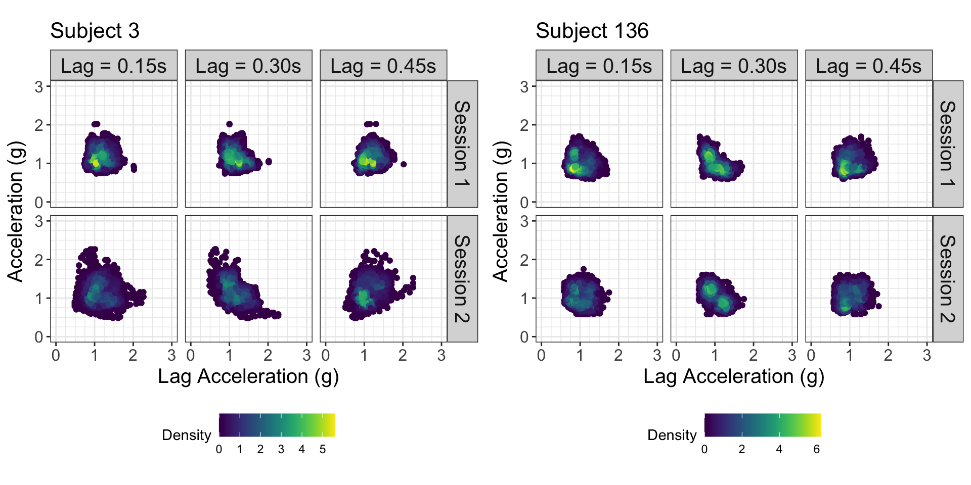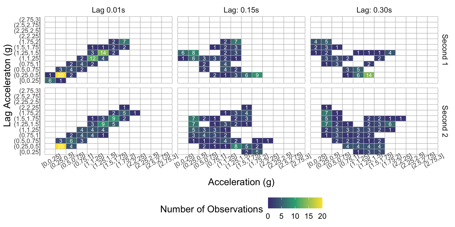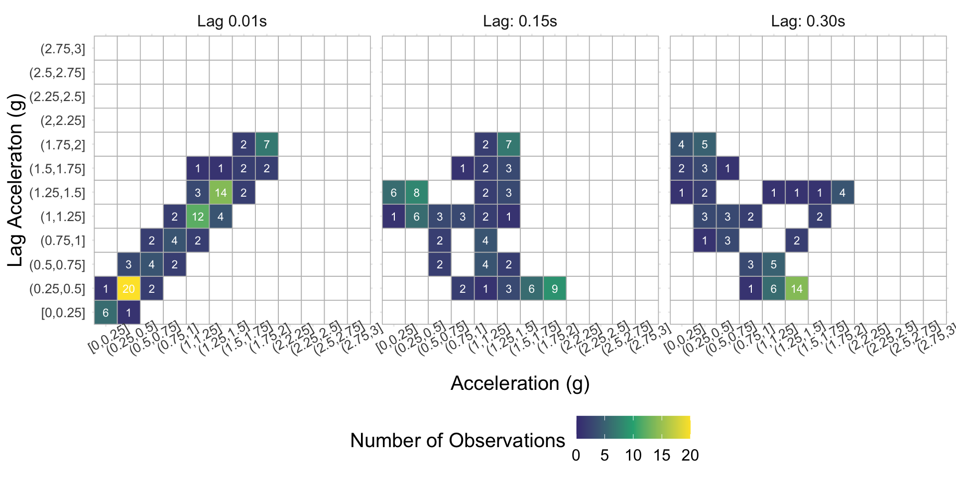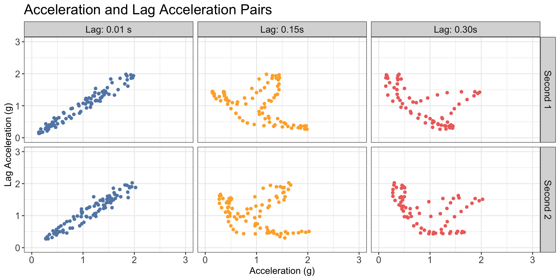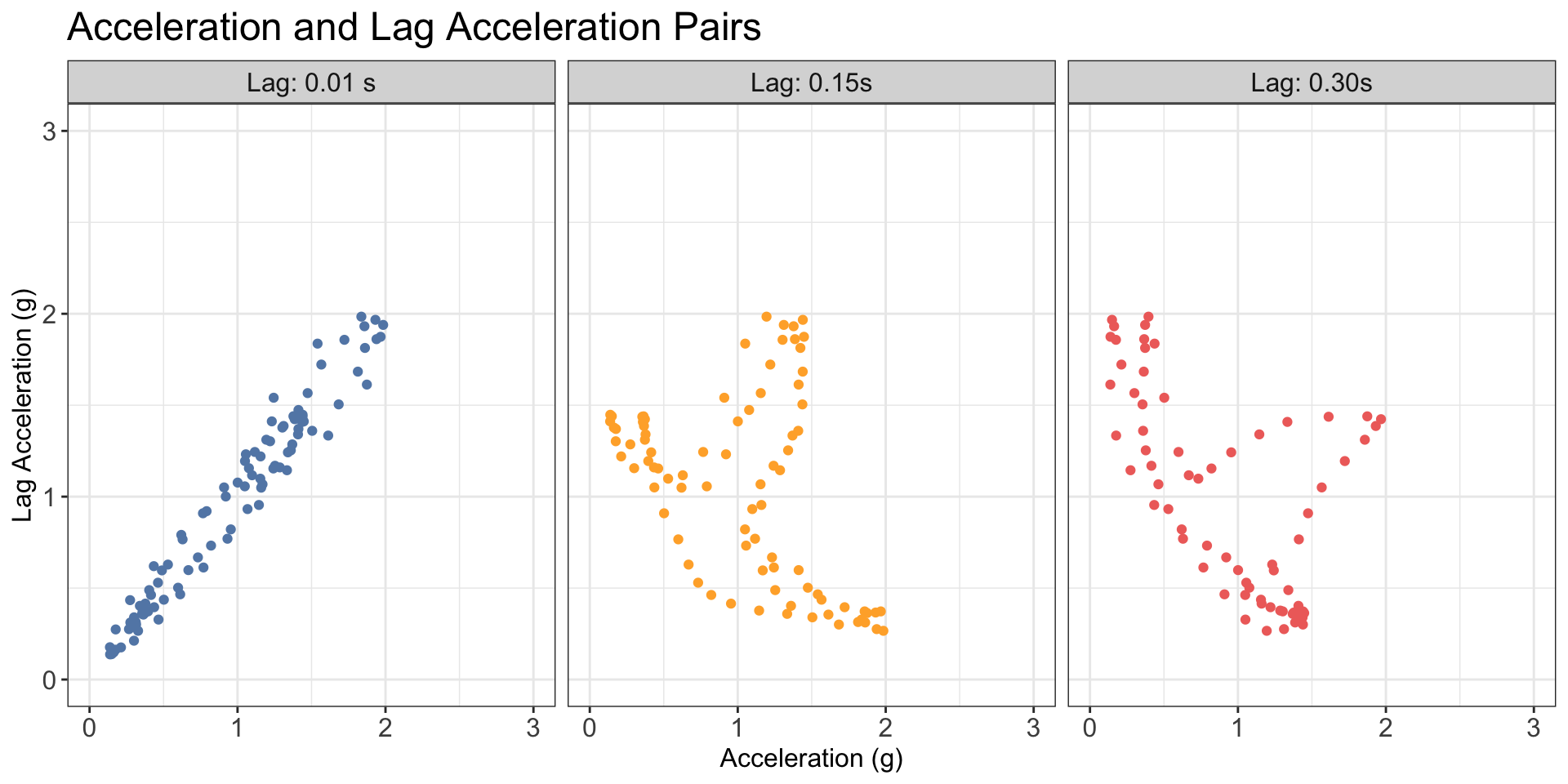 Obtain the empirical joint distribution of acceleration and lag acceleration for all possible lags (which can be represented as a series of images)