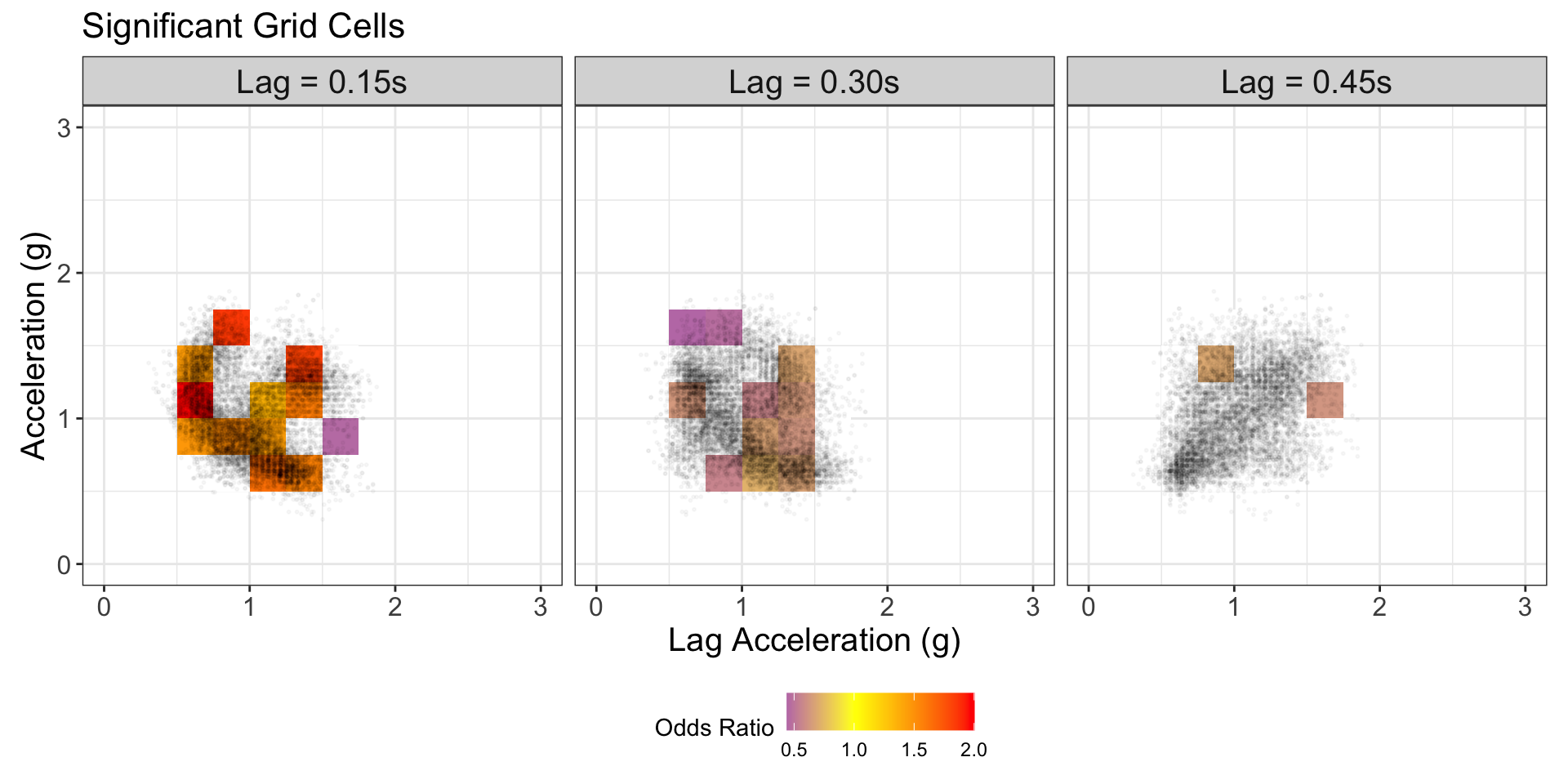 Partition acceleration by lag acceleration grid into 2D cells