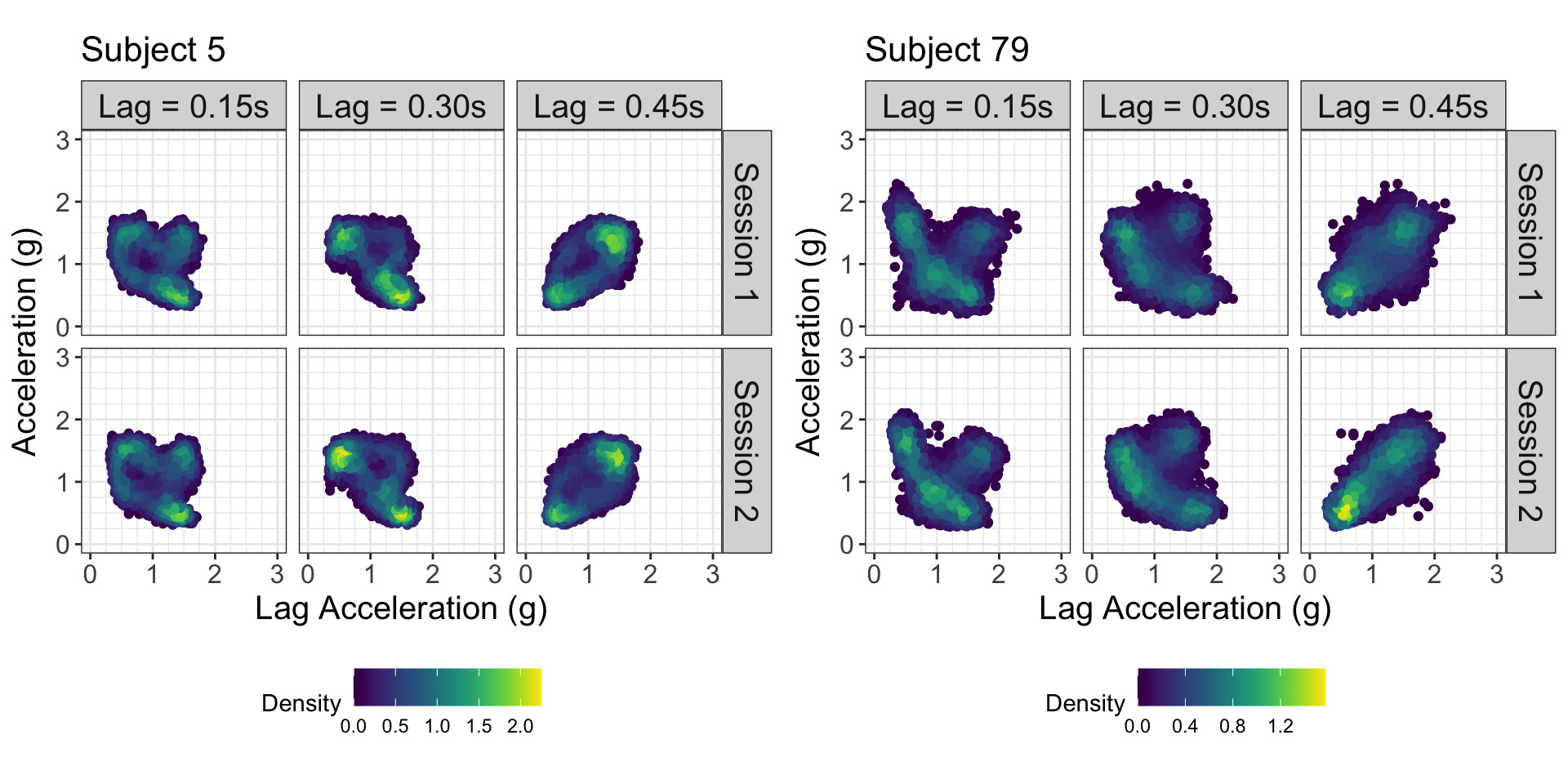 Implement model using \(\texttt{mgcv::gam}\) after manipulating empirical joint distribution into matrices of acceleration, lag acceleration, and lag