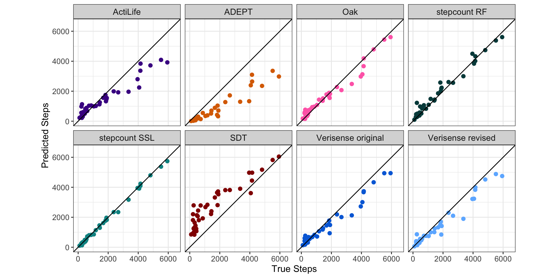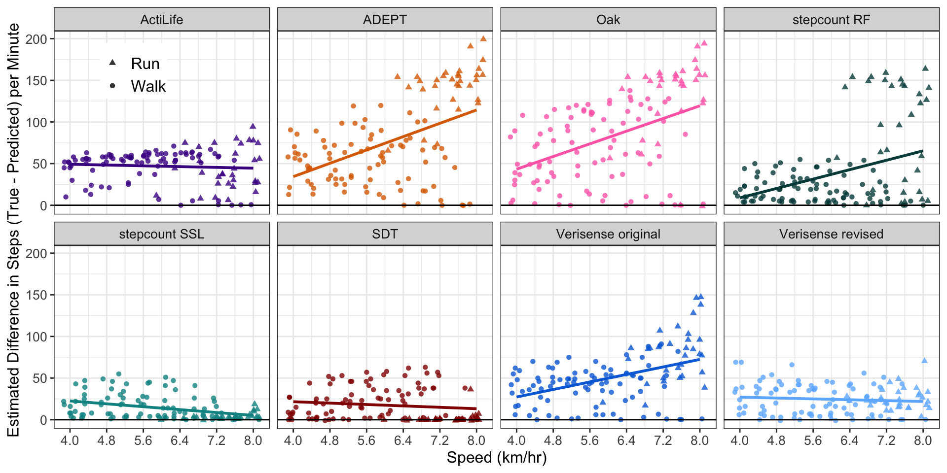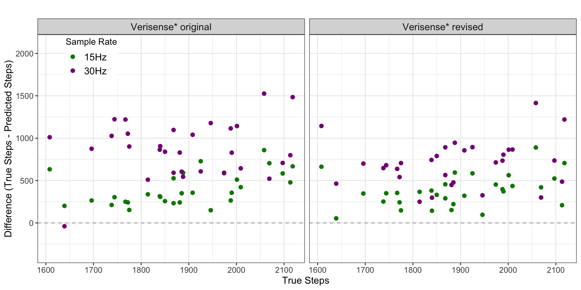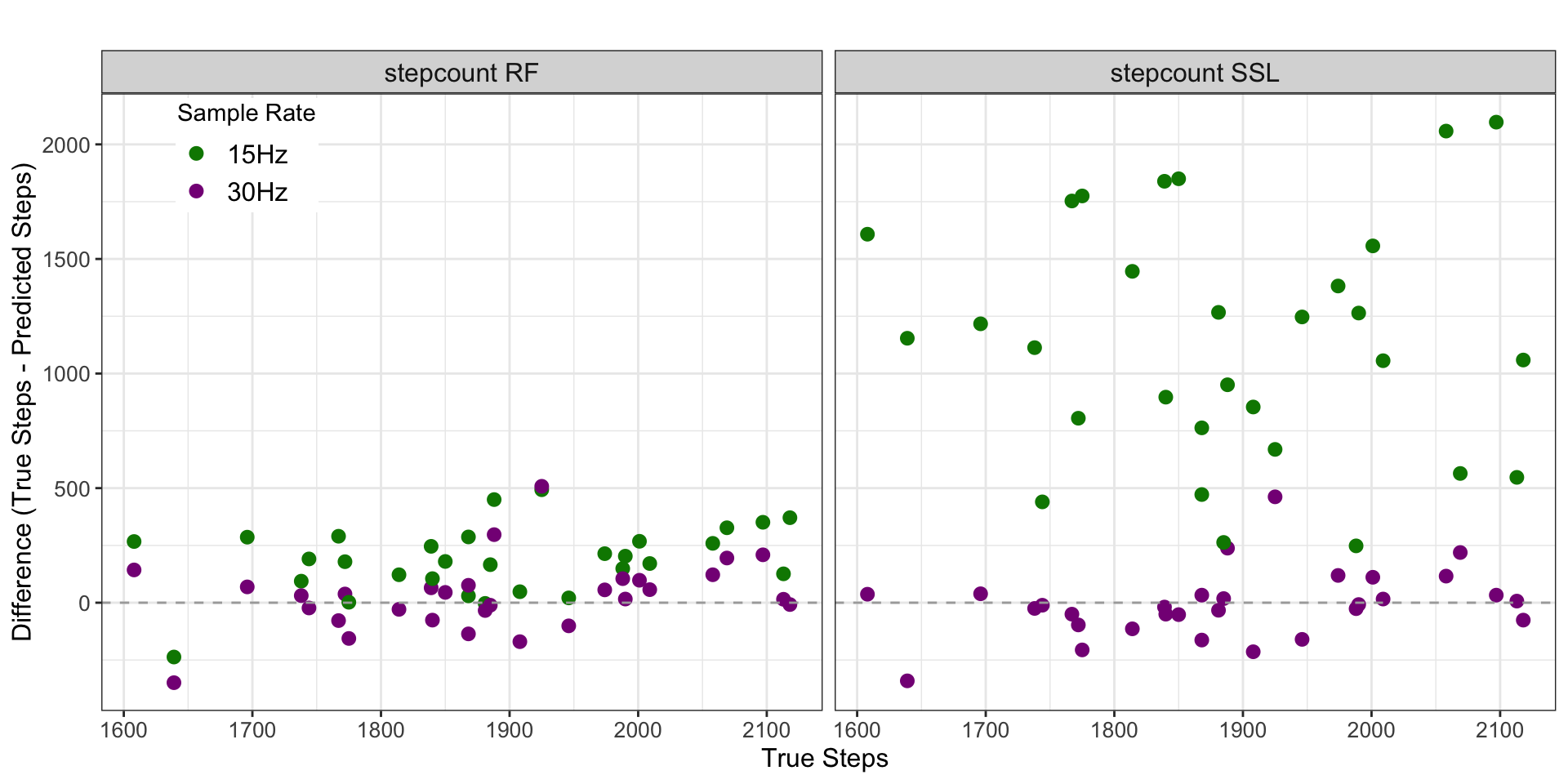 | Bias (predicted steps - true steps) mean (SD) | ||||